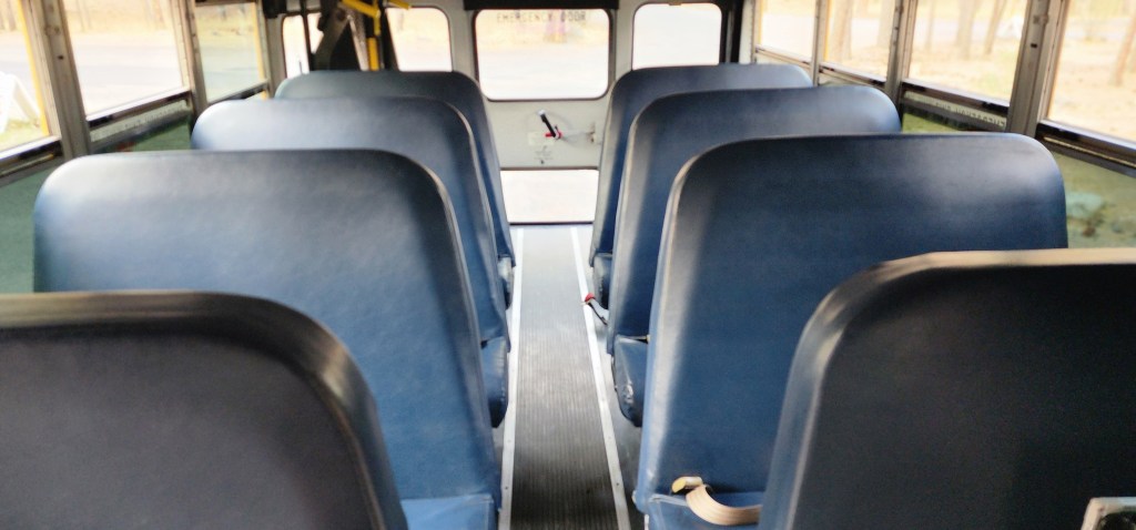 - Energy-absorbing, compartmentalized seating: High-backed, padded seats are spaced closely together to protect children from impact—no car seats required.